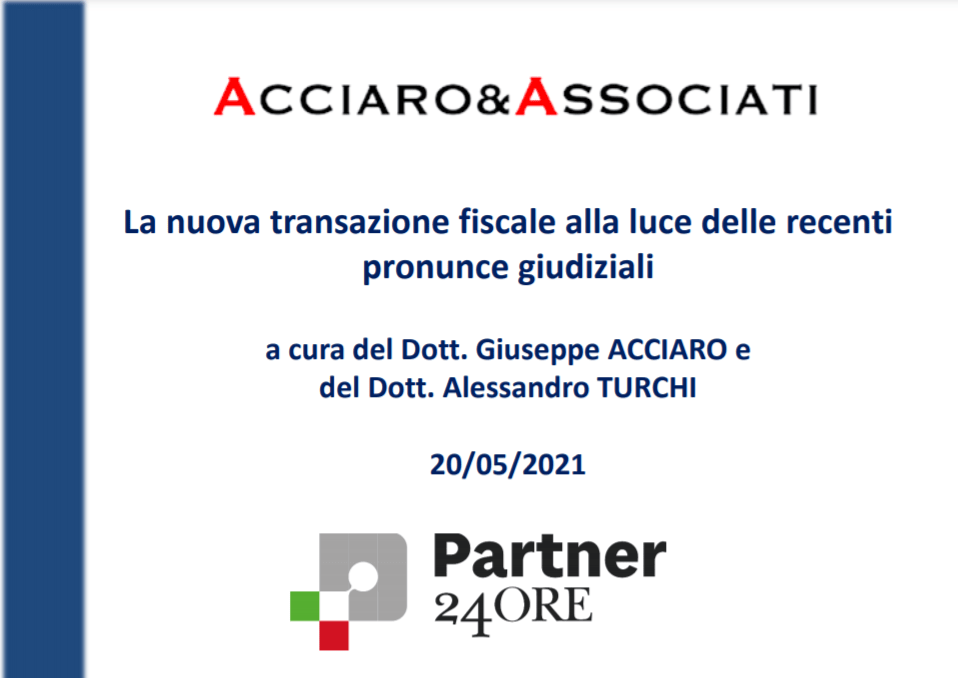 Si è svolto lo scorso 20 maggio il webinar dal titolo "La nuova transazione fiscale alla luce delle recenti pronunce giudiziali". Relatori sono stati Giuseppe Acciaro e Alessandro Turchi di Acciaro...